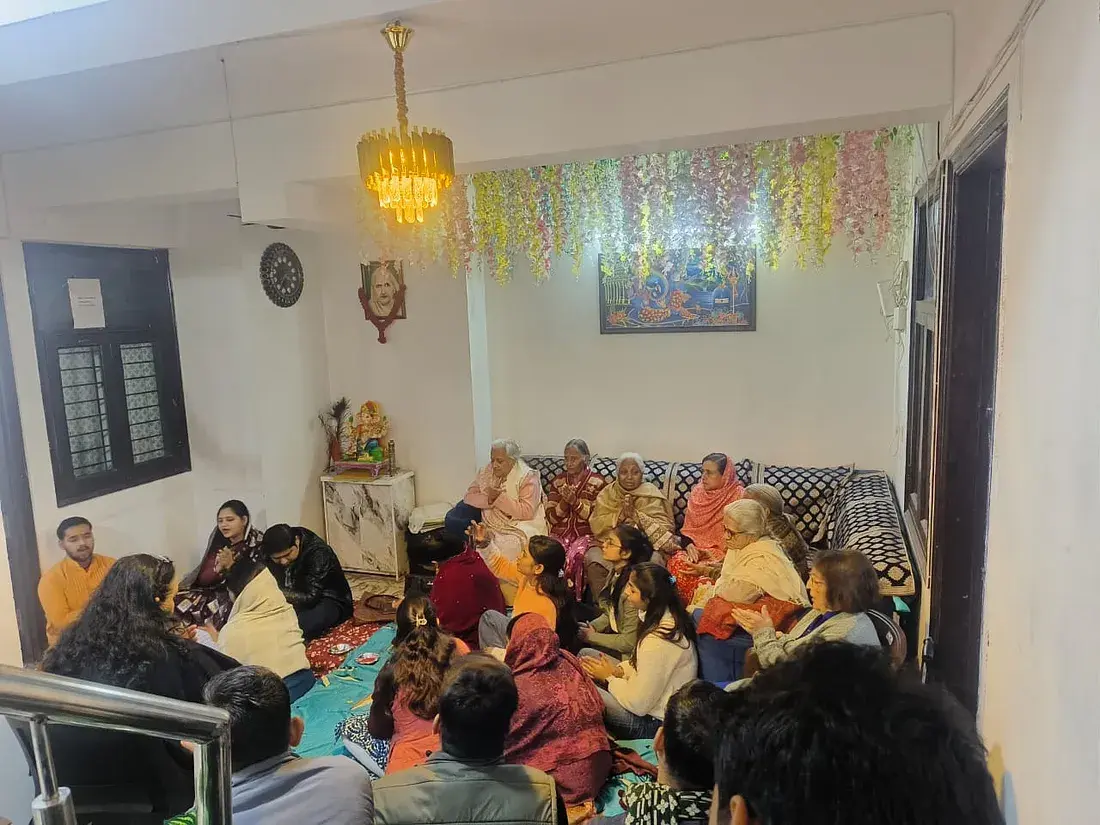 Residents and caregivers unite in devotion during the Satyanarayan Katha ceremony